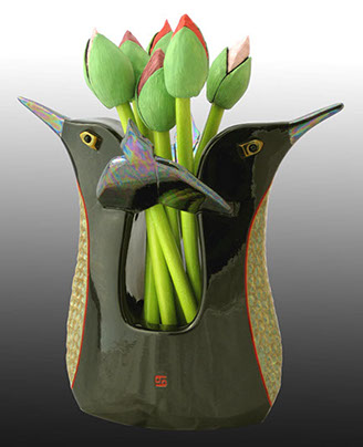 Steve's internationally award-winning, one-of-a-kind ceramic sculpture is precision crafted by hand and fired several times to create his layered glaze effects he is known for. All of his sculpture reflects his theme of "Thought Into Form" from his ideas and statements based on Quantum Physics, Quantum Entanglement and Spirituality. The Agent of Change: Thought Into Form project was inspired by his art creations. Pieces are available as indicated.